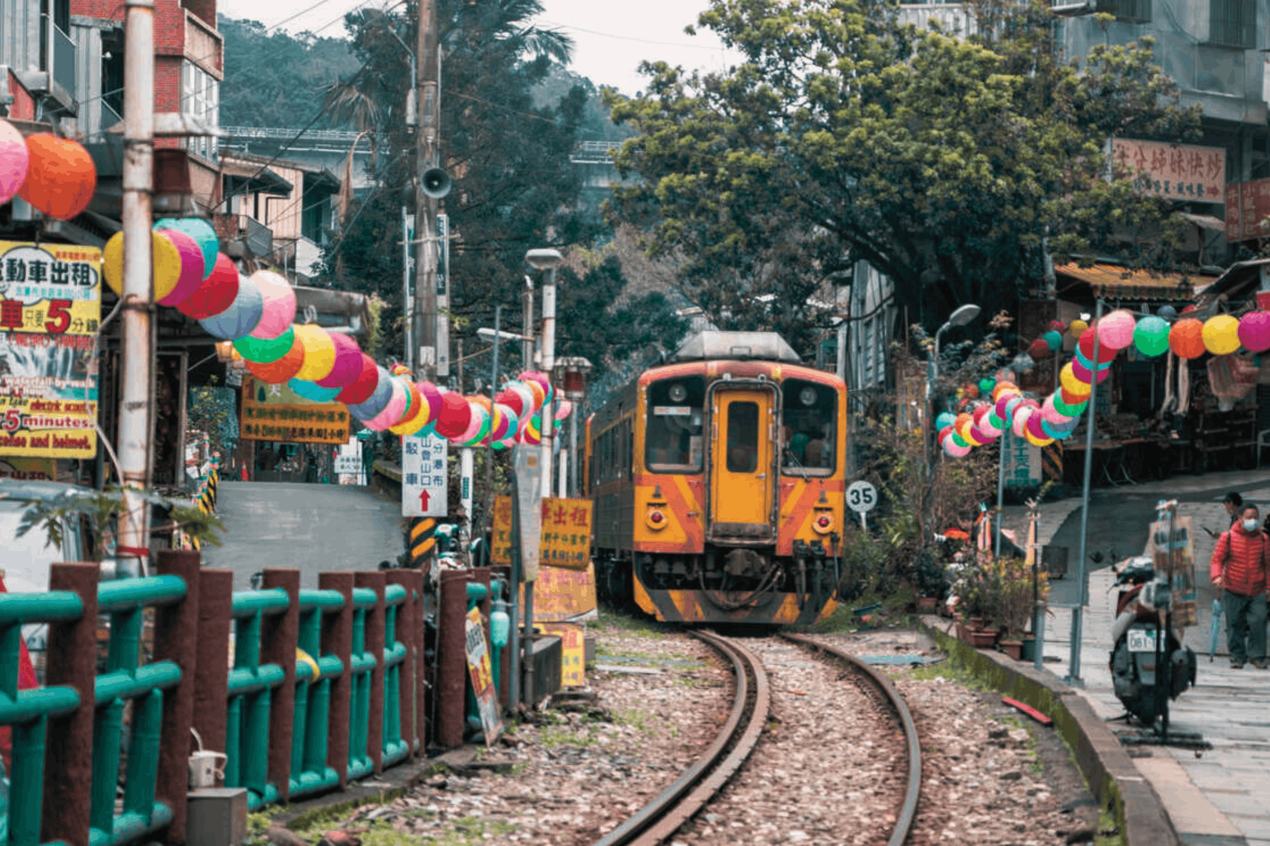 因縱貫其間的鐵道而別具特色,老屋沿軌道而立,遊人可在此寫下心願,點燃天燈,伴隨鐵道聲響冉冉升空,寄託祝福與希望。