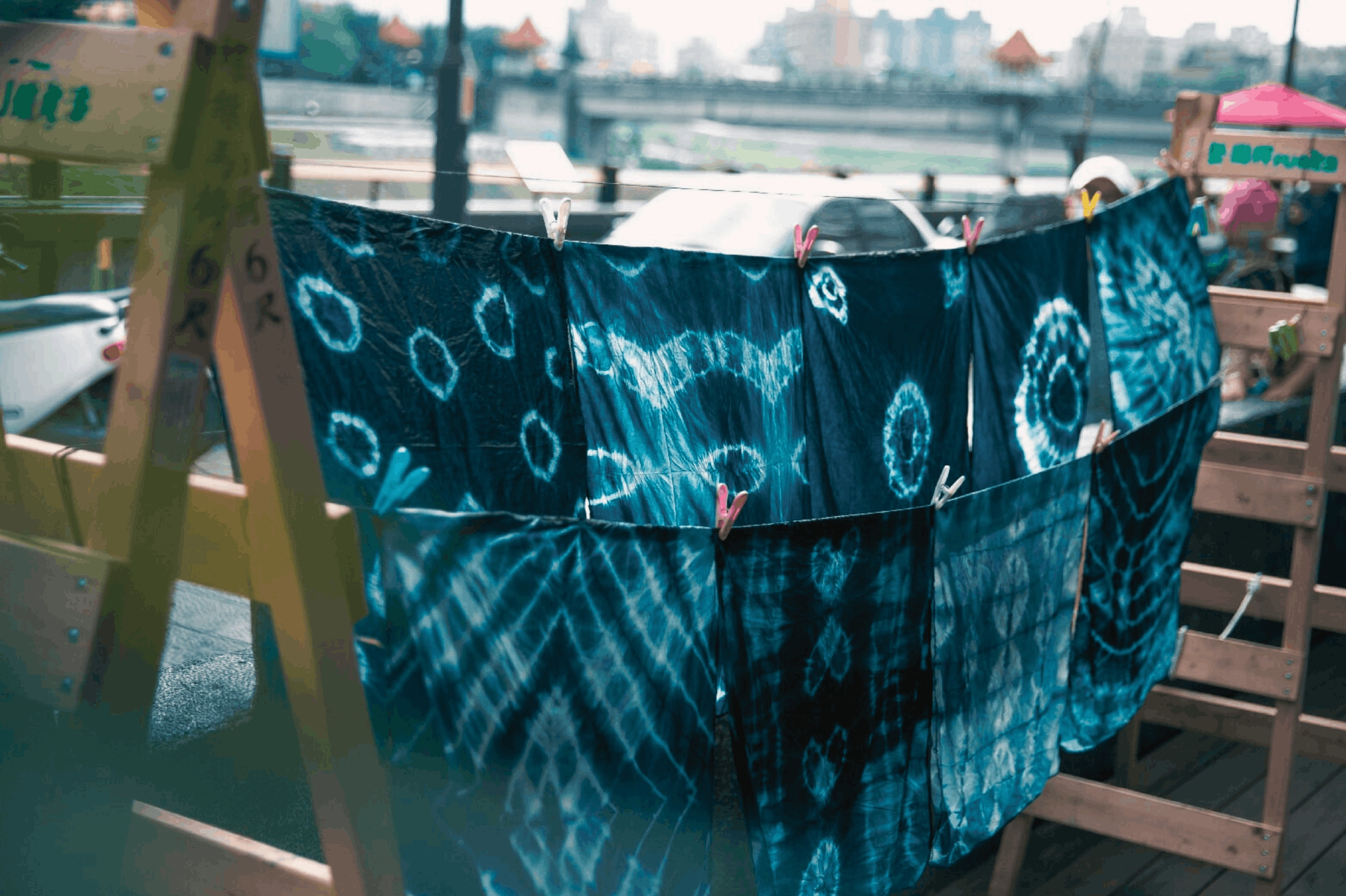 在老染坊裡,匠師將帶領你以扎染方式,將棉布浸入靛藍染液中,創造獨一無二的藍染作品。