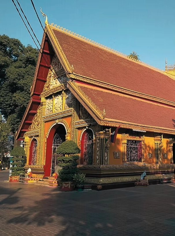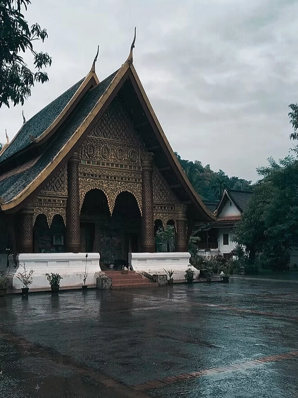是龍坡邦最具代表性的古寺,建於16世紀, 融合傳統寮國佛教建築與精美金色壁飾。 寺內華麗的琉璃鑲嵌與屋脊飛簷展現絕美工藝, 被譽為寮國建築藝術的瑰寶。