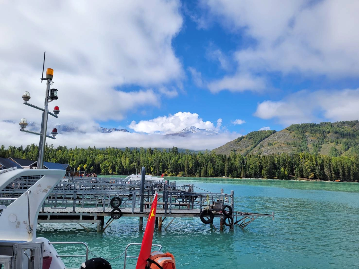 乘坐客艇環湖是遊喀納斯吸引人的賣點,遊艇尚未出航,來自海內外的旅客驚嘆眼前湖光山色景致,興奮的你一言我一語講個不停。「安靜!」船老大一生喝令,全船乘客靜默不敢吭氣,船長說:「這麼吵我怎麼講話,大家把救生衣穿好了才開船」。頓時響起熱烈掌聲報以溫馨鼓勵。