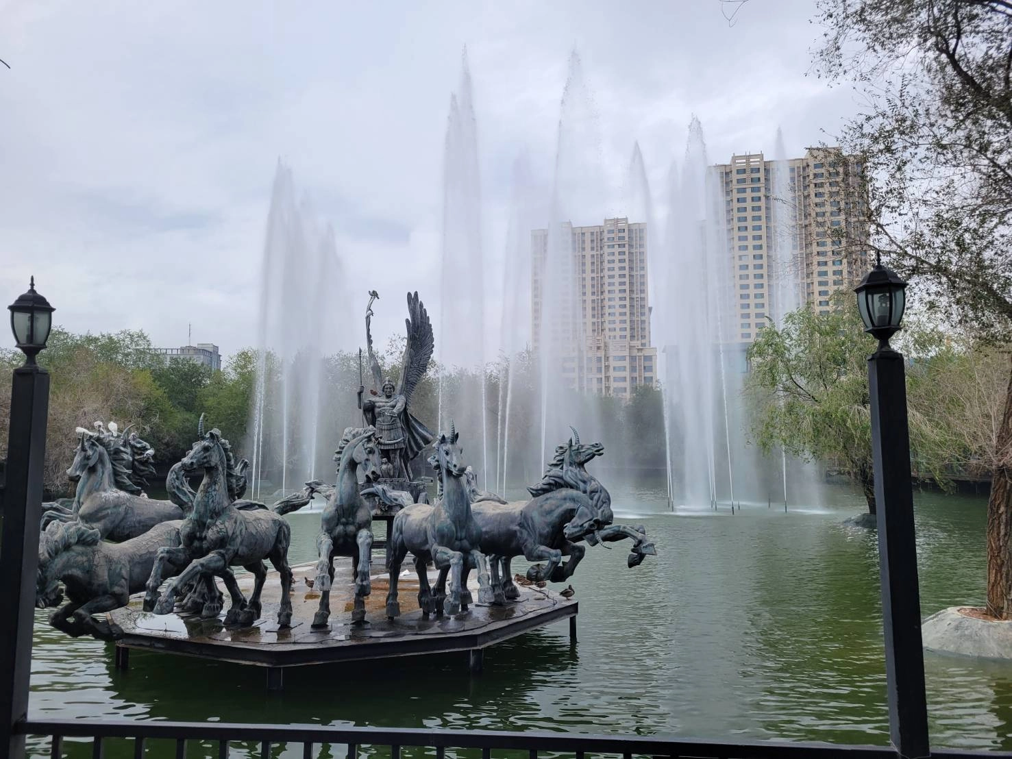 在西域幸福號正式出發前,旅行社特別規劃一天在烏魯木齊的行程,讓經歷長途跋涉到新疆的旅客們稍微緩和休息,抵達新疆後的第一天我們即在新疆古生態園中度過。新疆之大,大到宅配快遞都害怕,由於土地面積足夠,因此被充分運用,「新疆古生態園-汗血寶馬基地」稱得上是民營企業的翹楚。
